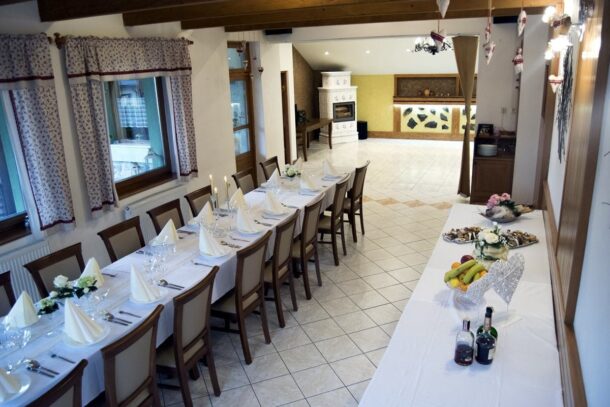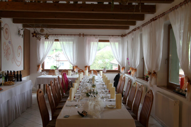 V príjemnej atmosfére našej reštaurácie v zelenom dome pre Vás radi pripravíme rodinné oslavy, svadby, posedenia, firemné akcie alebo teambuilding. Ponúkame široký výber jedál slovenskej a európskej kuchyne. Ohník v piecke spríjemňuje posedenie v reštaurácii s kapacitou 60 miest.